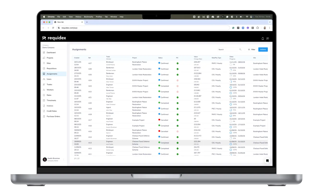 Efficiently managing recruitment across various roles is critical in the construction industry. Our Trades feature allows you to build detailed job descriptions, establish rate cards, and create competency matrices for every role you need to recruit—be it blue, white, or grey collar.